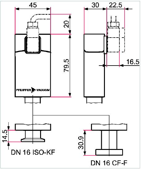 Pfeiffer 皮拉尼 / 電容真空計(jì) PCR 280 尺寸圖